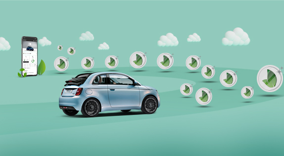 Più km percorri con la Nuova 500, più FIAT e.Coins raccogli. Grazie all'app FIAT puoi controllare il tuo portafoglio digitale, accedere al portale KIRI e utilizzare subito i tuoi e.Coins. Ti aspetta una gamma esclusiva di prodotti e occasioni eco-friendly. Scopri a cosa abbiamo pensato per premiare ogni giorno le tue scelte sostenibili! (*).